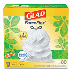 OdorShield Tall Kitchen Drawstring Bags, 13 gal, 0.95 mil, 24" x 27.38", White, 80/Box